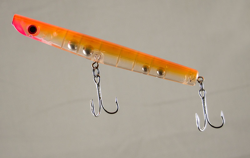 The Skid Stik is manufactured using state of the art plastic resins and molding processes with strict quality control including tank testing, leak testing, and pull force testing. Each lure is consistently and optimally weighted using steel balls for optimum balance, long easy casting, and consistent top water performance. The weighting system also serves as a game fish attracting rattle. The Skid Stik floats so the lure doesn't have to be worked hard and if it's separated from the fishing line the bouyant Skid Stik can be easily retrieved from boat or kayak. Realistic paint schemes, lifelike eyes, and quality hook hardware make the Skid Stik a great fishing value.