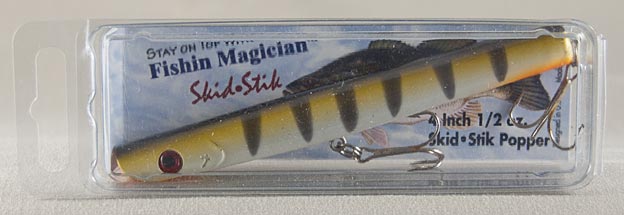The 4 inch Skid Stik is the right choice for exciting freshwater surface action. It's available in 5 colors that Largemouth Bass, Smallmouth Bass and other freshwater gamefish can't resist.